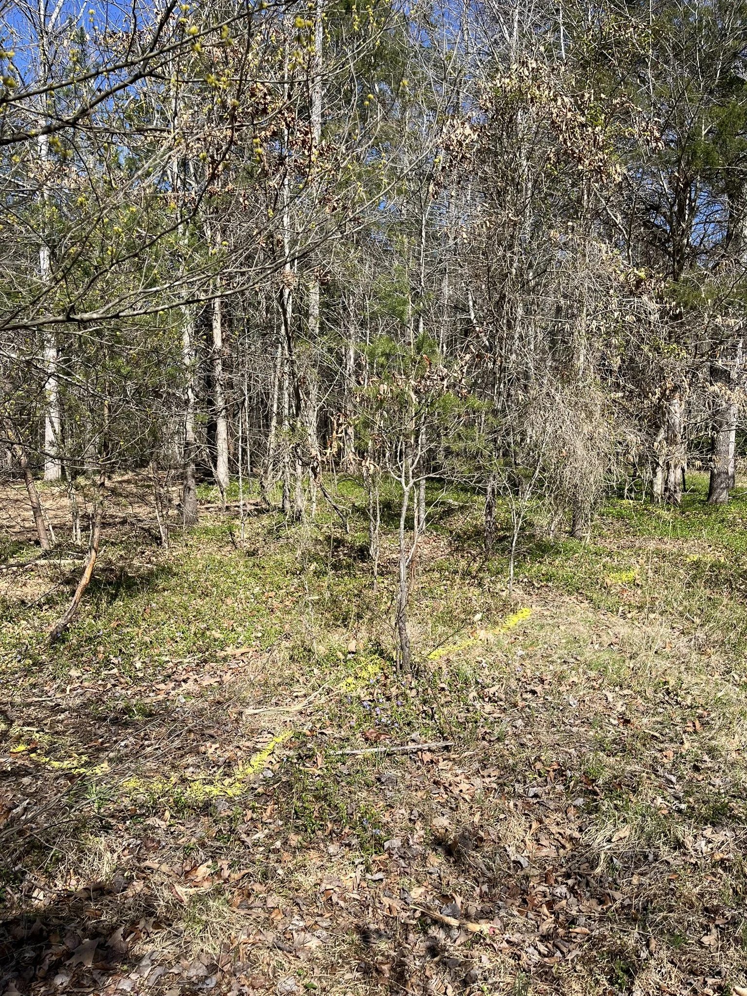 Mulching for a beehive installation - before picture (yellow line indicates desired space to be cleared)