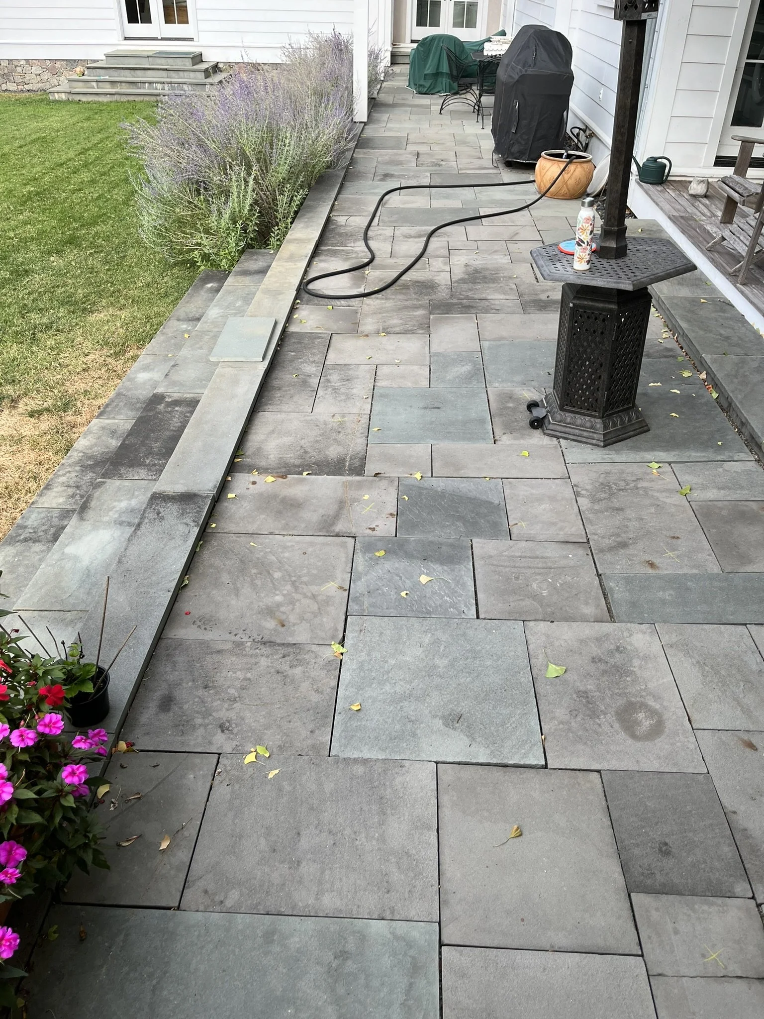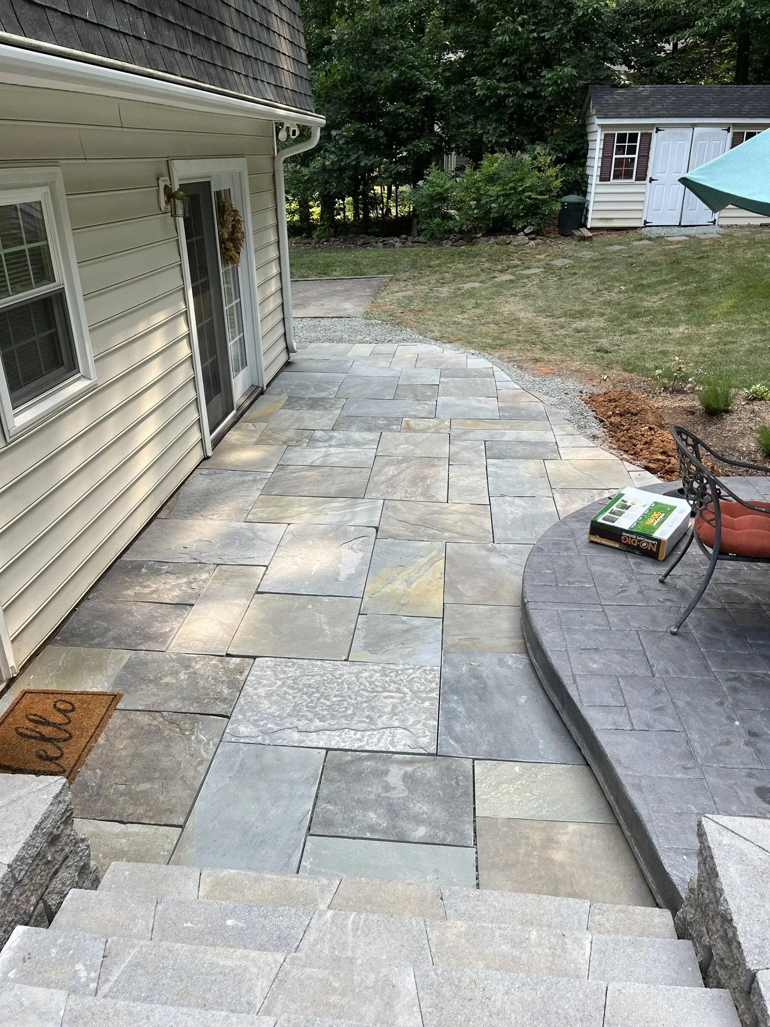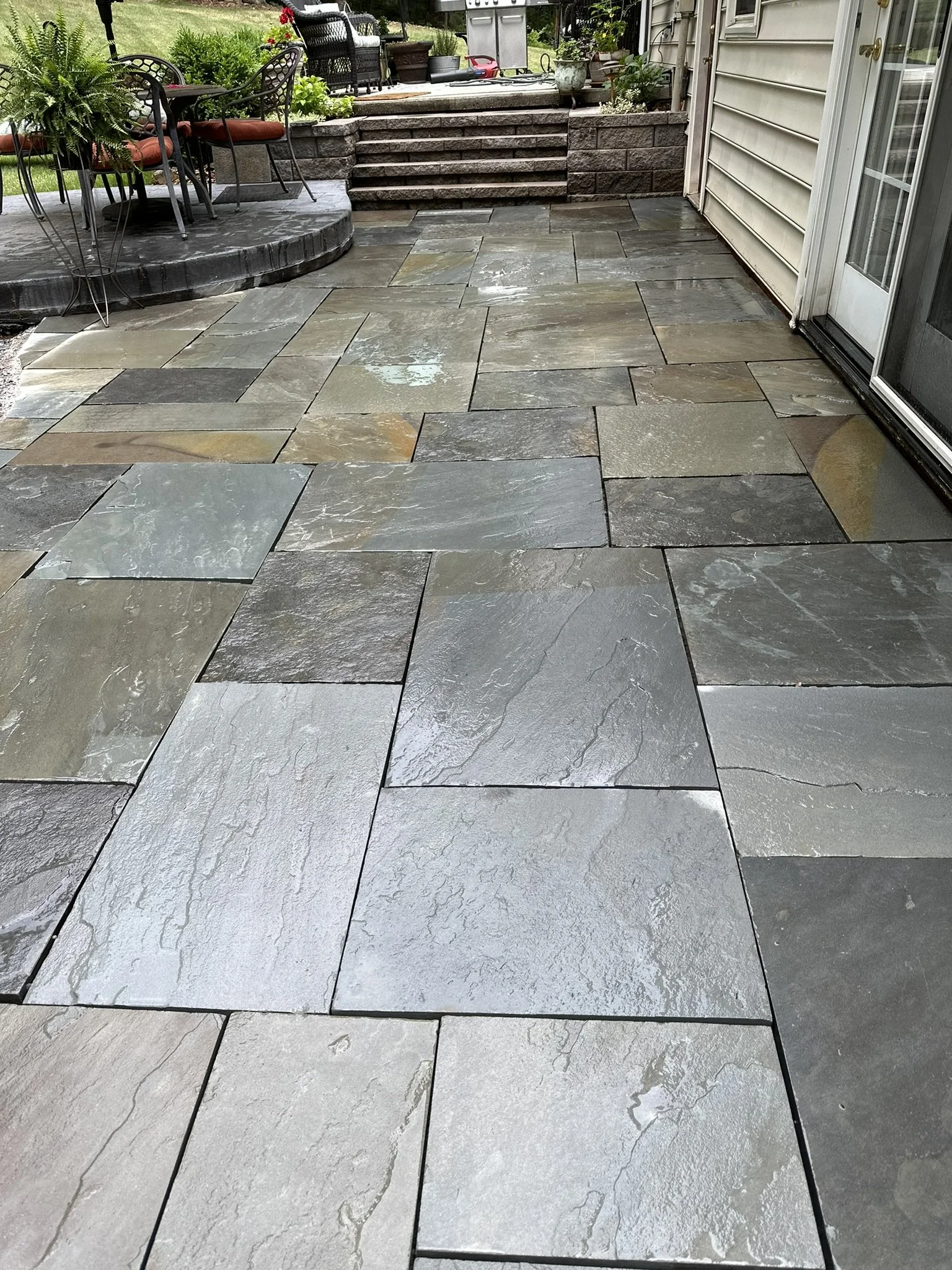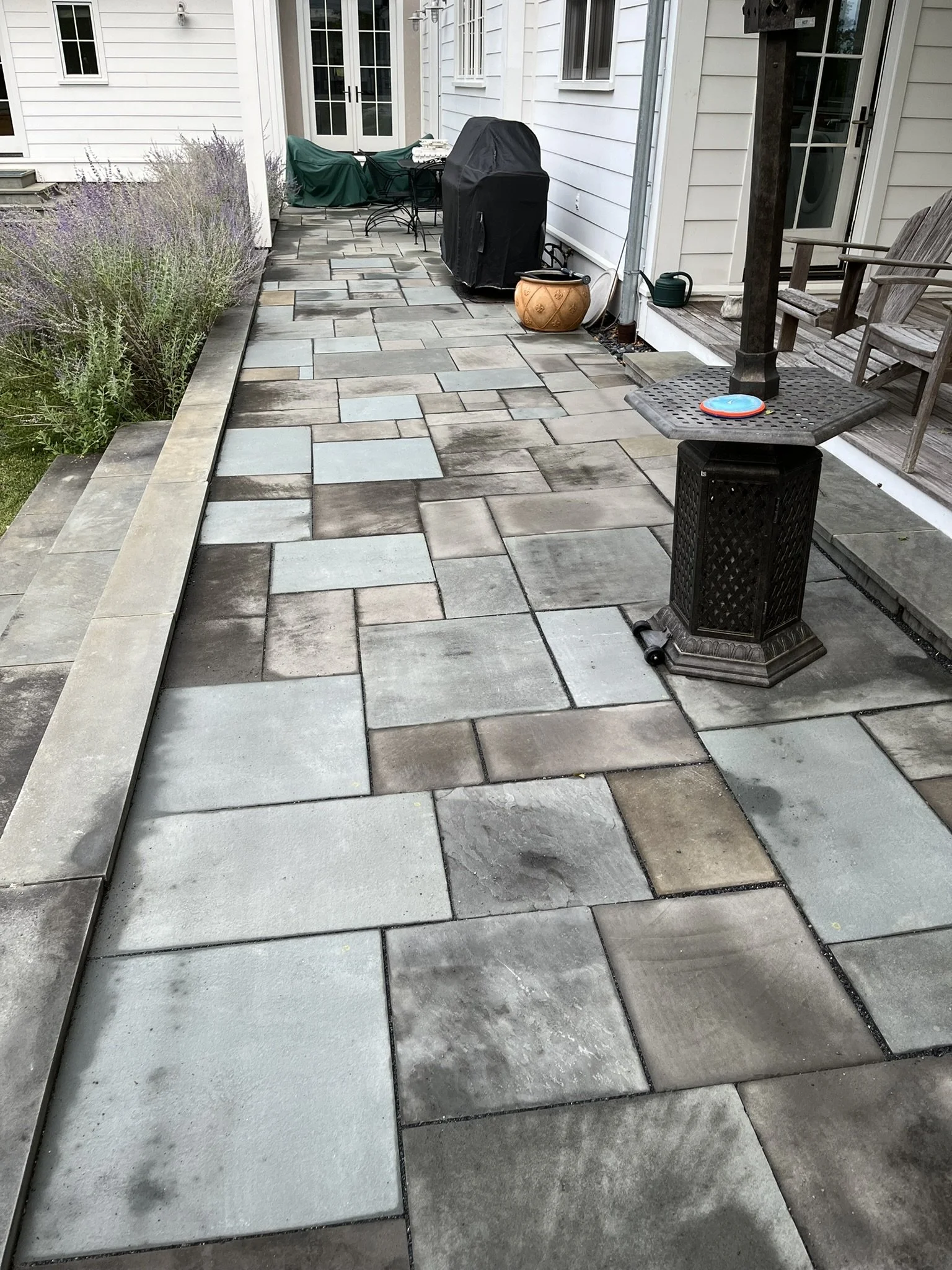 Sawn thermal bluestone patio repair - replaced several discolored or broken pavers